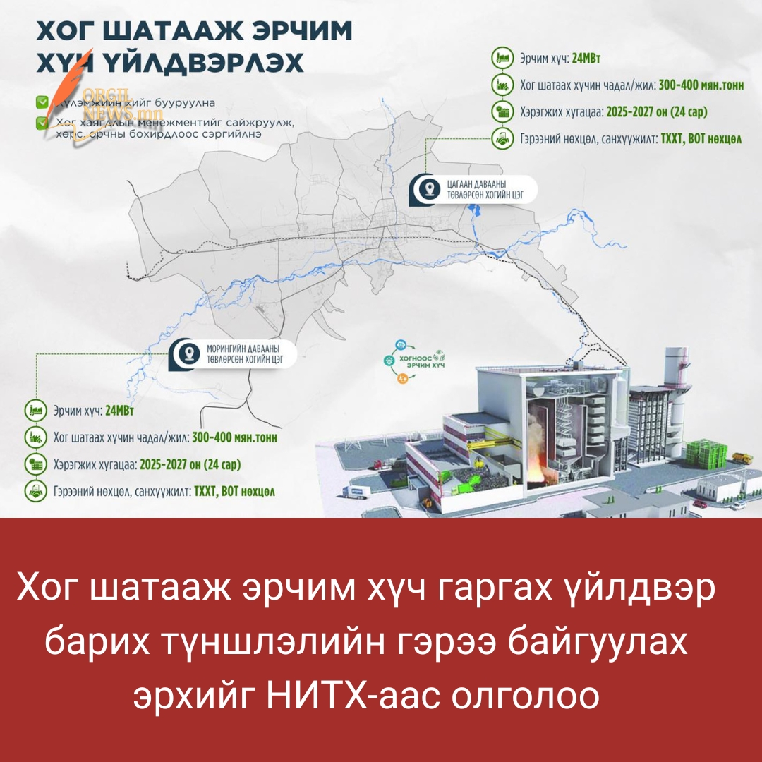 Нийслэлээс хэрэгжүүлж байгаа мега төслүүдийн нэг “Хог шатааж эрчим хүч гаргах үйлдвэр” төсөлд түншлэлийн гэрээ байгуулах эрхийг НИТХ-аас нийслэлийн Засаг дарга бөгөөд Улаанбаатар хотын Захирагч Х.Нямбаатарт олголоо. Нийслэлийн хэмжээнд жилд 1.5 сая тонн хог хаягдал төвлөрсөн цэгүүдэд хүргэгдэж, үүнээс ердөө 25 орчим хувийг нь дахин боловсруулдаг. Тэгвэл Улаанбаатар хот төдийгүй Монгол Улсад анх удаа олон улсын жишигт нийцүүлэн “Хог шатааж эрчим хүч гаргах үйлдвэр” төслийг төр, хувийн хэвшлийн түншлэлээр барина.