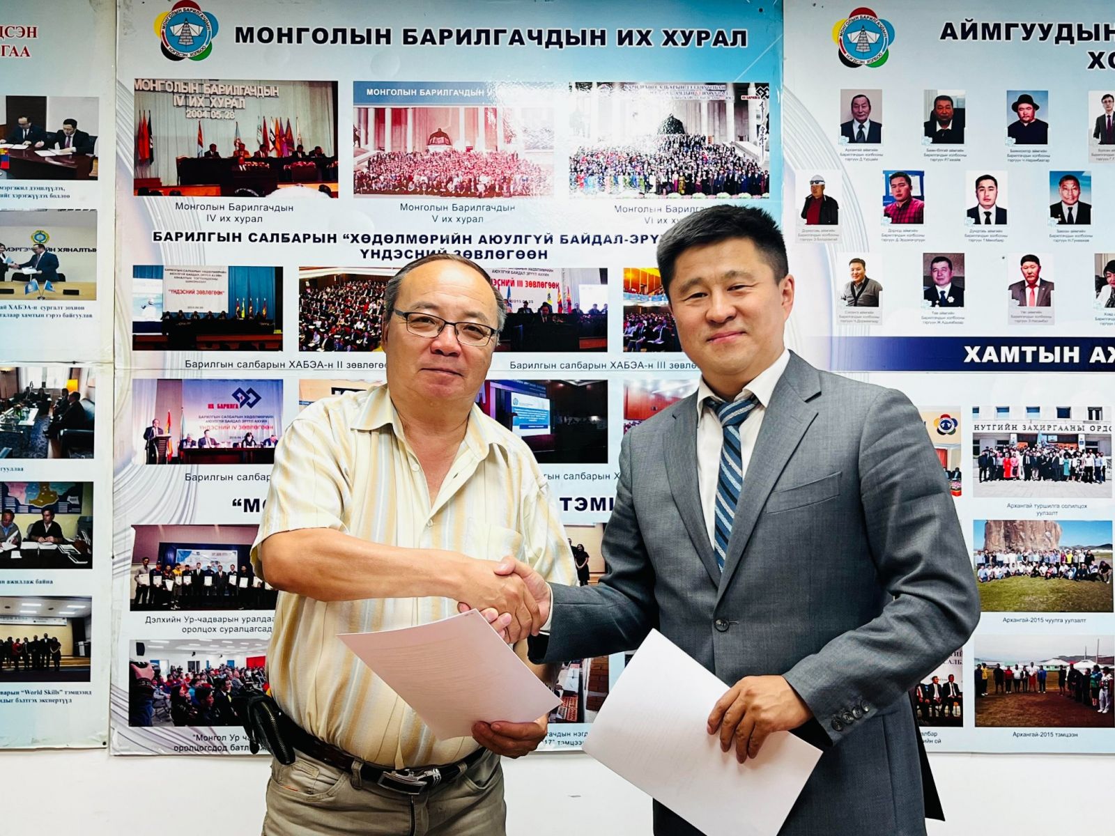 “Ашид Ассет Менежмент ҮЦК” ХХК болон “Барилгачдын Нэгдсэн Холбоо” ТББ хооронд хамтран ажиллах санамж байгуулж Гүйцэтгэх захирал А.Батпүрэв, Ерөнхийлөгч М.Батбаатар нар гарын үсэг зурлаа.