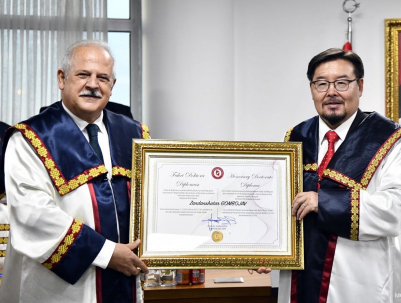 Мөн Монгол, Туркийн харилцаа, тэр дундаа Монгол Улсын Их Сургууль болон Измир Катип Челеби их сургуулийн хамтын ажиллагааг өргөжүүлэх, хоёр их сургуулийн байгуулсан Түрэг судлалын хамтарсан хүрээлэнгийн баг археологийн судалгааны ажлуудаа амжилттай явуулахад бодит хувь нэмэр оруулж, дэмжлэг үзүүлж ирсэн явдлыг нь үнэлэн тус их сургуулийн Эрдмийн зөвлөлийн гишүүд санал нэгтэйгээр “Хүндэт доктор” цол олгохоор шийдвэрлэсэн гэж байлаа.