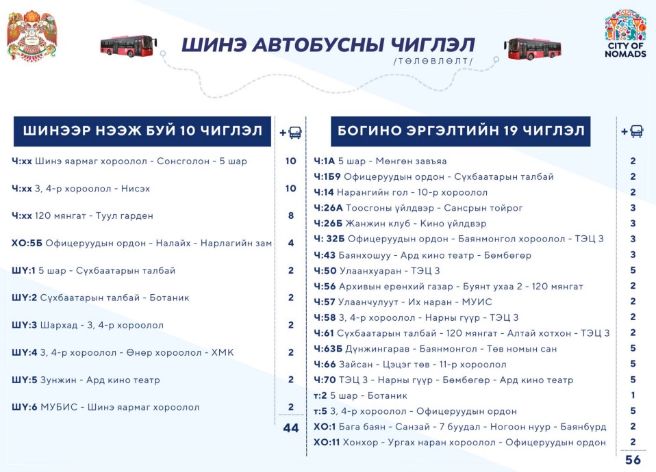 Шинэ автобуснуудыг дараах чиглэлд явуулахаар төлөвлөжээ