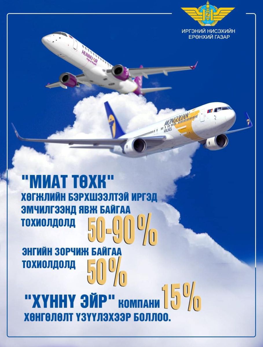 Мөн "ХҮННҮ ЭЙР" компани 15 хувийн хөнгөлөлт үзүүлэхээр болсон байна: