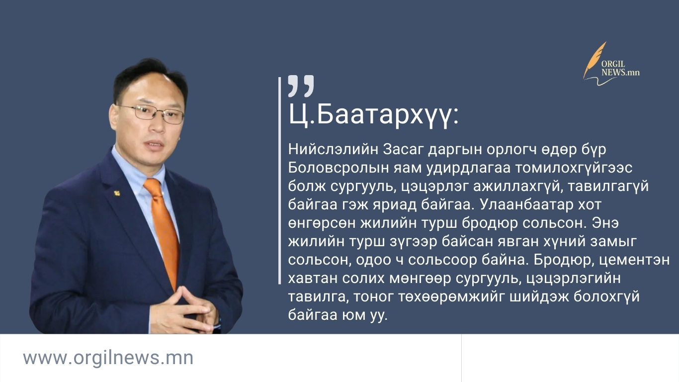 2026 оныг боловсролыг дэмжих жил болгон зарласан. Нийслэлийн Засаг даргын орлогч өдөр бүр Боловсролын яам удирдлагаа томилохгүйгээс болж сургууль, цэцэрлэг ажиллахгүй, тавилгагүй байгаа гэж яриад байгаа. Улаанбаатар хот өнгөрсөн жилийн турш бродюр сольсон. Энэ жилийн турш зүгээр байсан явган хүний замыг сольсон, одоо ч сольсоор байна. Биднийг нийслэлд байхад нийслэл 800 тэрбум төгрөгтэй байсан энэ жил 10 их наяд төгрөг болж байна.Улаанбаатар хотын иргэдийн ая тухтай амьдрал 10 дахин нэмэгдэж байгаа юу. Бродюр, цементэн хавтан солих мөнгөөр сургууль, цэцэрлэгийн тавилга, тоног төхөөрөмжийг шийдэж болохгүй байгаа юм уу. Боловсролын сайд, нийслэл хоёр нийлээд шийдэж чадахгүй байгаа юм уу. Яагаад хэвлэл мэдээллээр бие бие рүүгээ попроод нийслэлчүүдийг хохироож байгаа юм бэ.