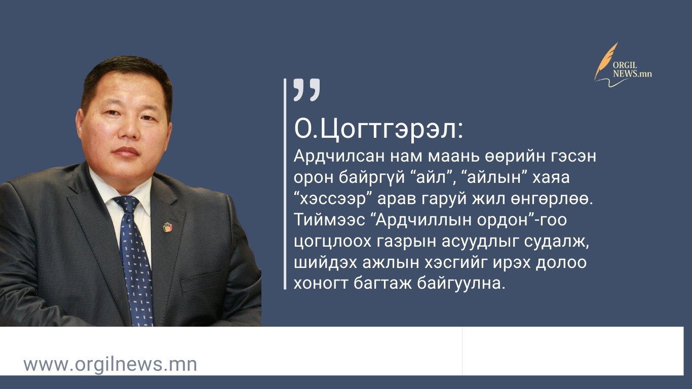 Ардчилсан нам маань өөрийн гэсэн орон байргүй “айл”, “айлын” хаяа “хэссээр” арав гаруй жил өнгөрлөө. Тиймээс “Ардчиллын ордон”-гоо цогцлоох газрын асуудлыг судалж, шийдэх ажлын хэсгийг ирэх долоо хоногт багтаж байгуулна.